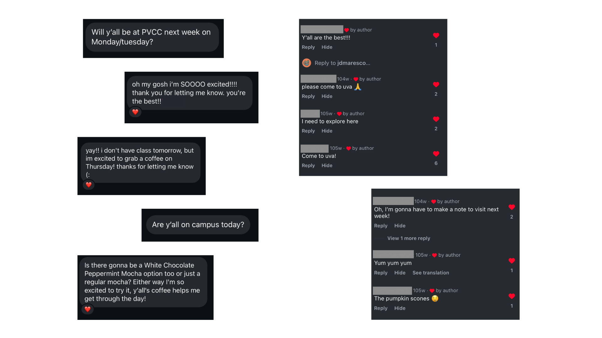 In the fall of 2023, I ran a local awareness campaign for Maresca’s Coffee — the mobile espresso and pastry bar I co-own in Charlottesville. At the time, we were operating full-time from Piedmont Virginia Community College, a great location with beautiful mountain views but little visibility from the road.
